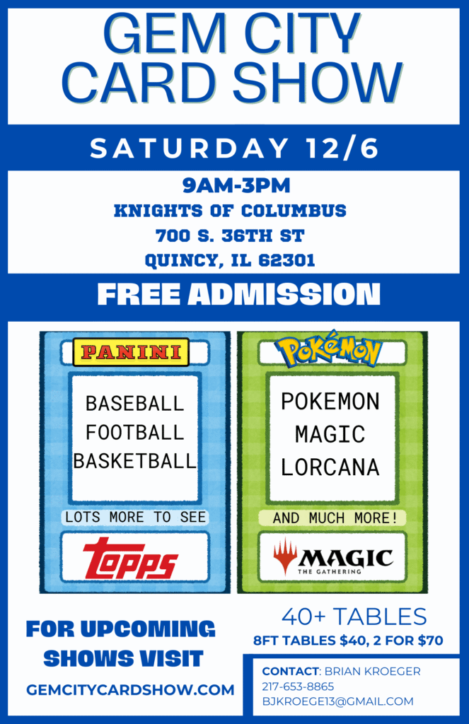 Saturday December r 6th, Quincy, IL 9AM-3PM